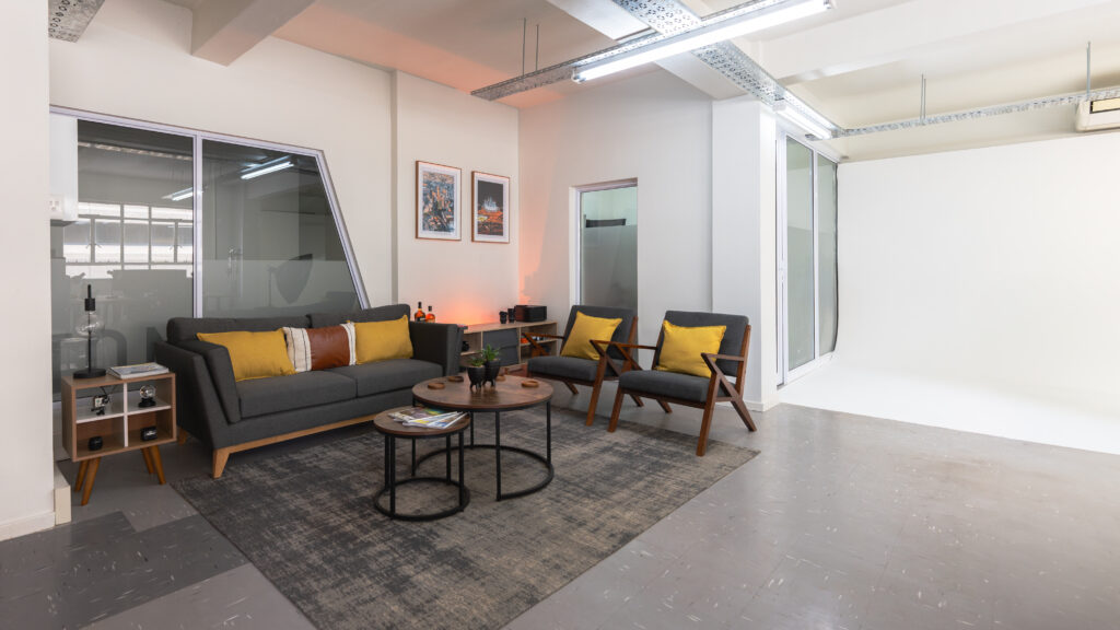 Our studio is the perfect setting for photographers, videographers, and content creators. With our easy online booking system, you’ll have quick access to our infinity curve (paintable for a fee), colour backdrops, and greenscreen. The lounge doubles as a comfortable podcast setup, providing a versatile space for all your creative needs. Whether you’re shooting, recording, or creating, we’ve got everything you need to get shooting.